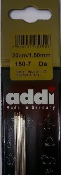 Спицы чулочные из никелированной стали №1,5*20 см 5 шт. Addi Германия