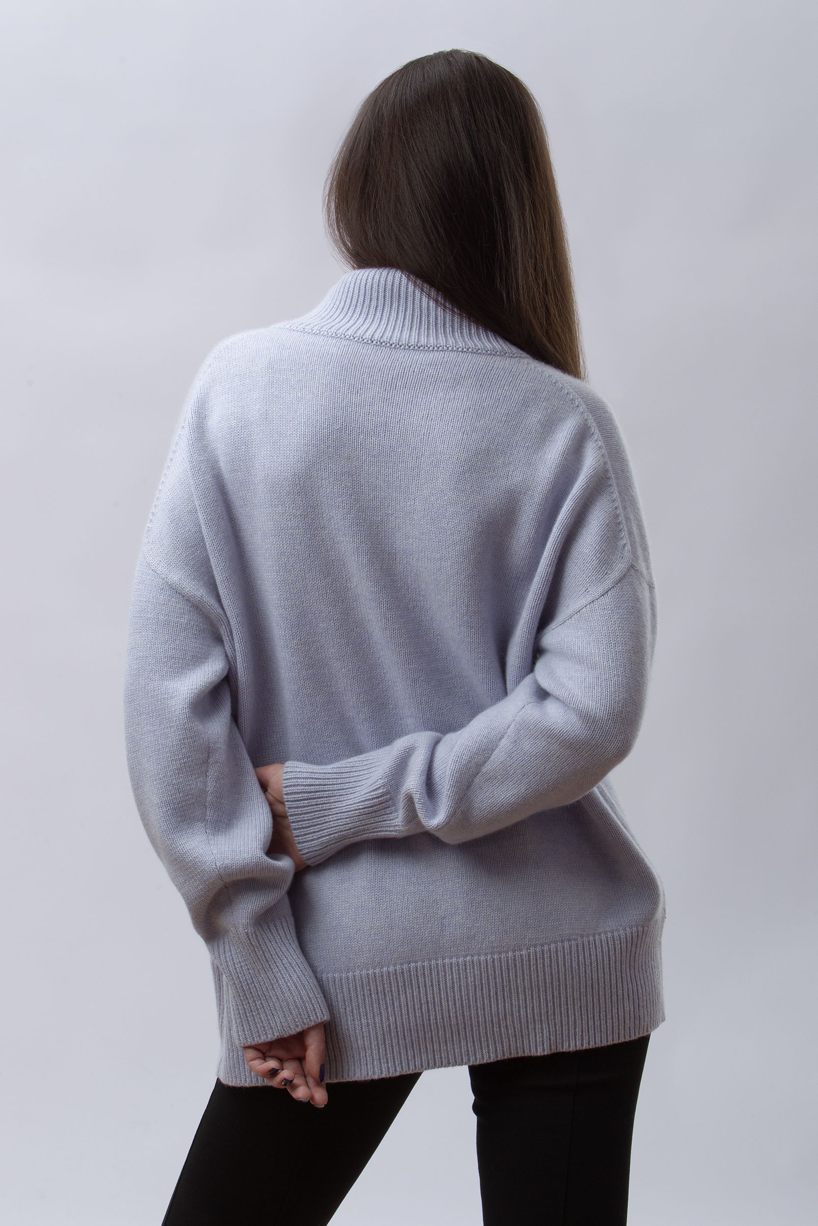 Свитер выполнен из 100% кашемира - материала, который отличается своей мягкостью, нежностью, не колется и не раздражает кожу. Модель — оверсайз позволит сочетать его как с брюками, джинсами, так и с юбками и платьями для делового стиля или спортивного образа.