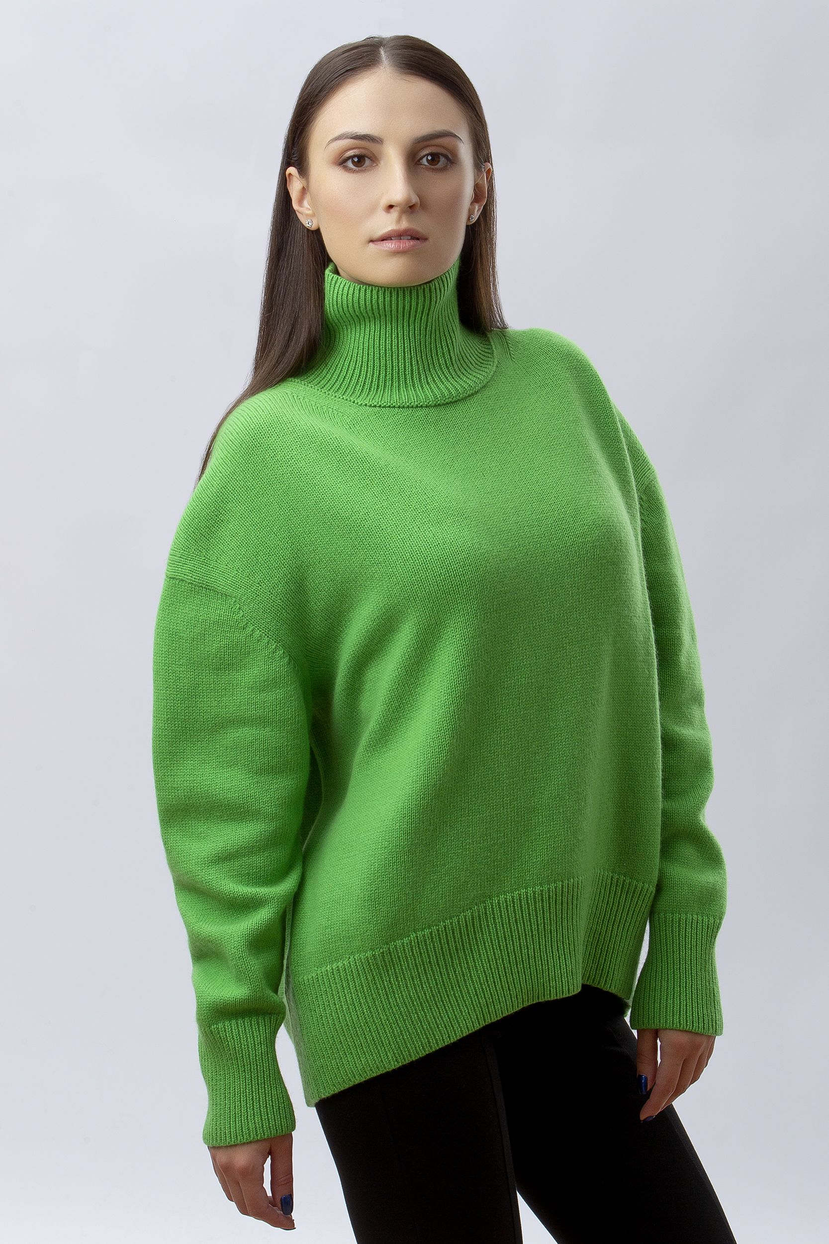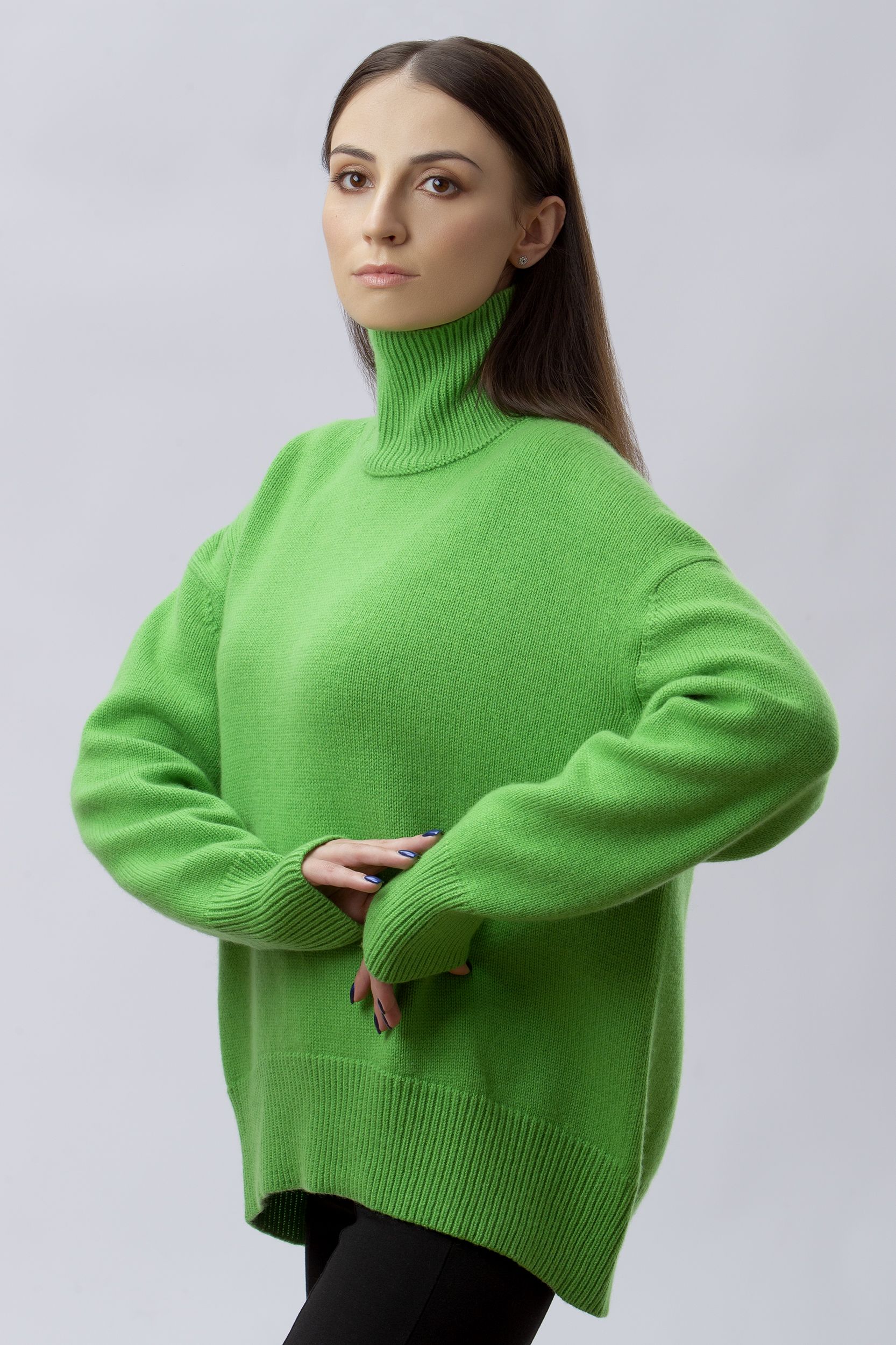 Свитер выполнен из 100% кашемира - материала, который отличается своей мягкостью, нежностью, не колется и не раздражает кожу. Модель — оверсайз позволит сочетать его как с брюками, джинсами, так и с юбками и платьями для делового стиля или спортивного образа.