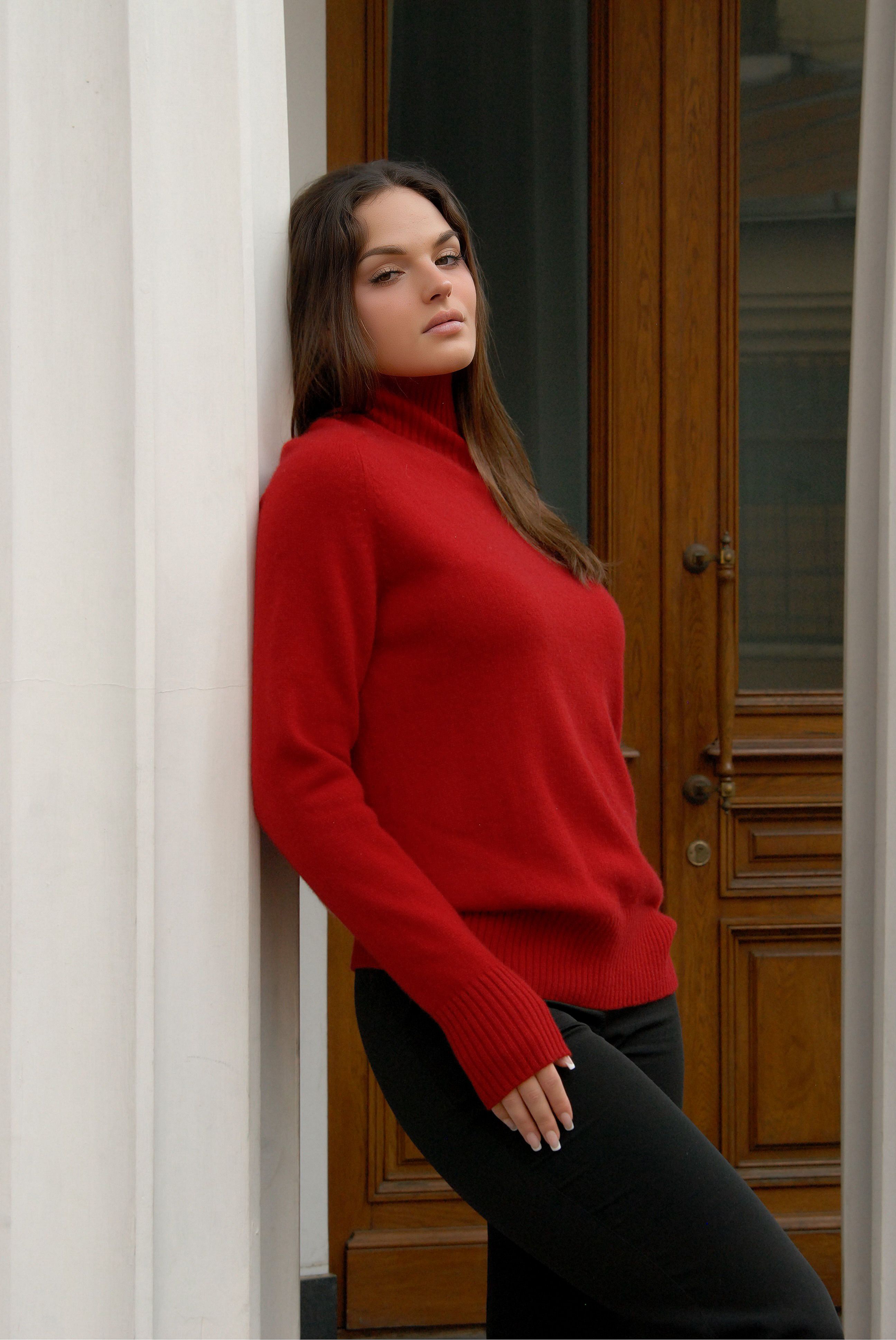 Свитер выполнен из 100% премиального итальянского кашемира - материала, который отличается своей мягкостью, нежностью, не колется и не раздражает кожу. Модель — оверсайз позволяет сочетать её, как с юбками и платьями, так и с брюками и джинсами для создания делового стиля или свободного спортивного образа.