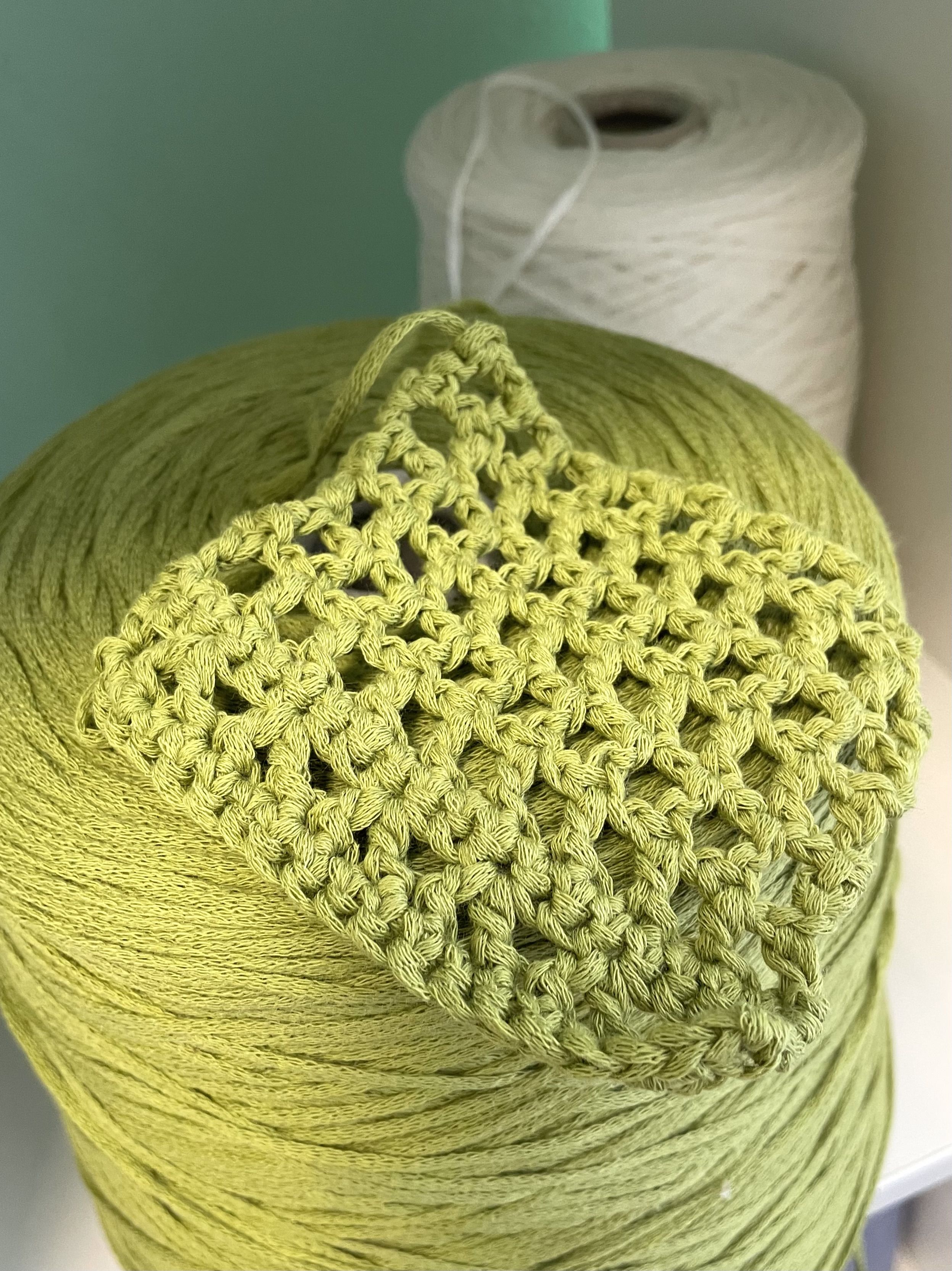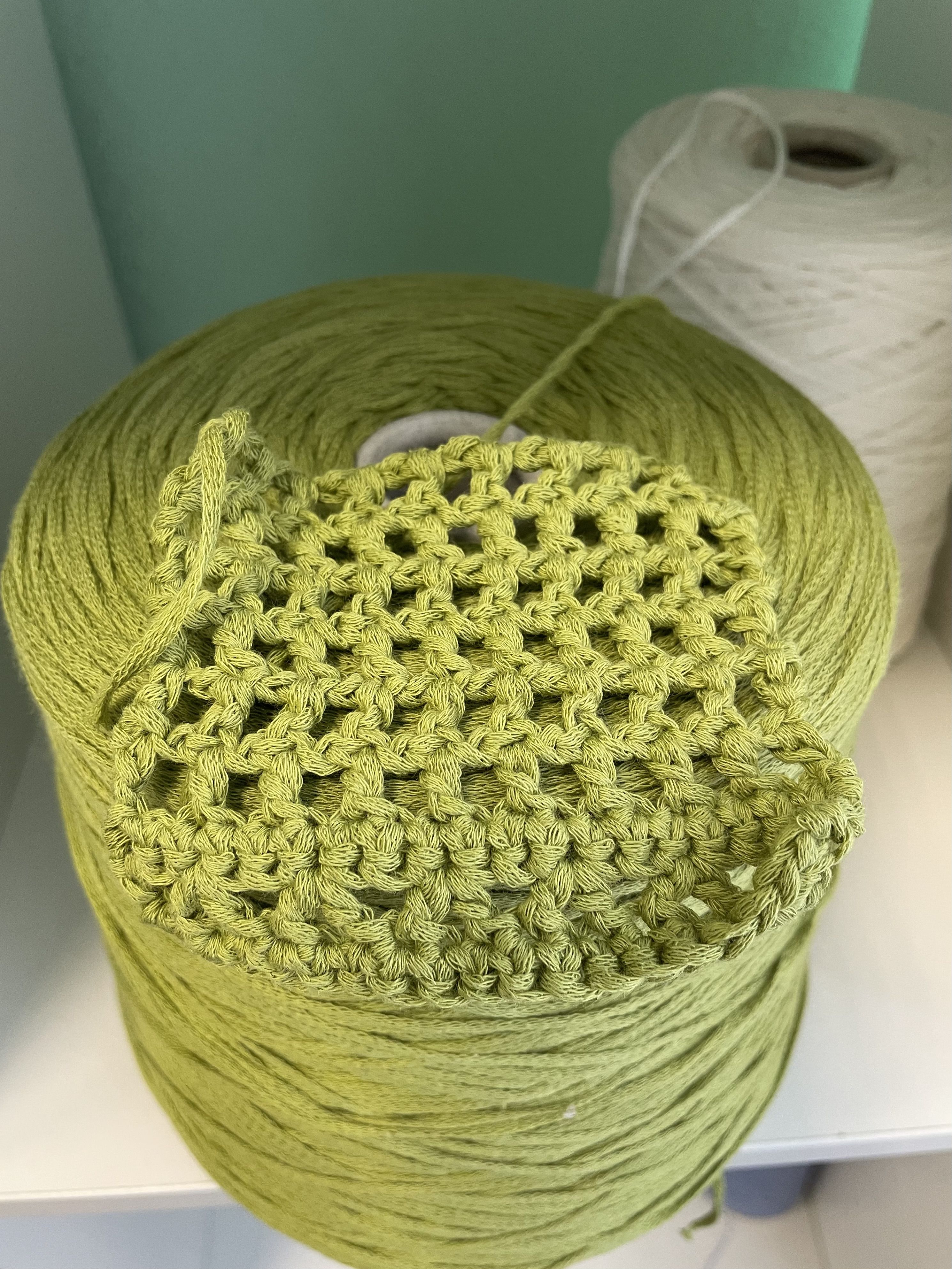 Пряжа отлично подходит для изготовления плетёных изделий: сумки, пояса, корзины для интерьера, макраме. А также сетчатые изделия, как второй слой на майку или футболку.